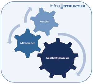 Genau hier setzt das Konzept der NETZkultur GmbH in Lippstadt ein. Sie hat eine eine leicht zu implementierende Softwarelösung unter dem Namen infra-struktur entwickelt, die in der Lage ist, jederzeit alle wichtigen Informationen bereitzustellen. Diese modulare Software-Plattform, die speziell für die Bedürfnisse von kleinen und mittelständischen Unternehmen entwickelt wurde, läßt sich branchenübergreifend einsetzen.
